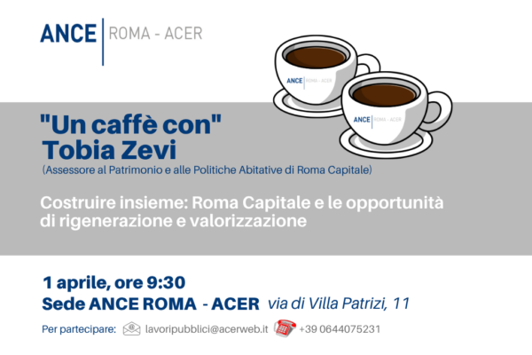 Mercoledì, 1 aprile – alle ore 9:30 – gli imprenditori ANCE ROMA – ACER incontreranno l’Assessore al Patrimonio e alle Politiche Abitative di Roma Capitale, Tobia Zevi. Per partecipare, è a disposizione l’Ufficio…