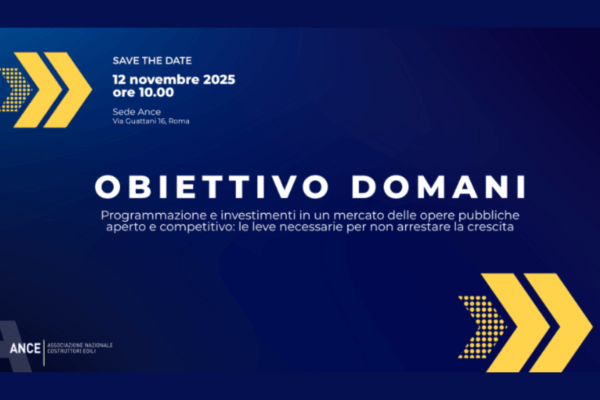 Il 12 Novembre, a partire dalle ore 10, ANCE organizza “Obiettivo domani – Programmazione e investimenti in un mercato delle opere pubbliche aperto e competitivo: le leve necessarie per non…