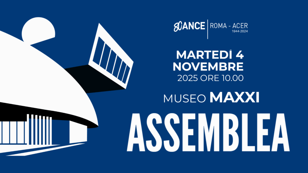Martedì 4 novembre, alle ore 10:00, si terrà al Museo MAXXI (via Guido Reni, 4) l’Assemblea pubblica di ANCE ROMA – ACER. Per info: eventi@acerweb.it oppure 0644075201 A breve sarà online il programma.