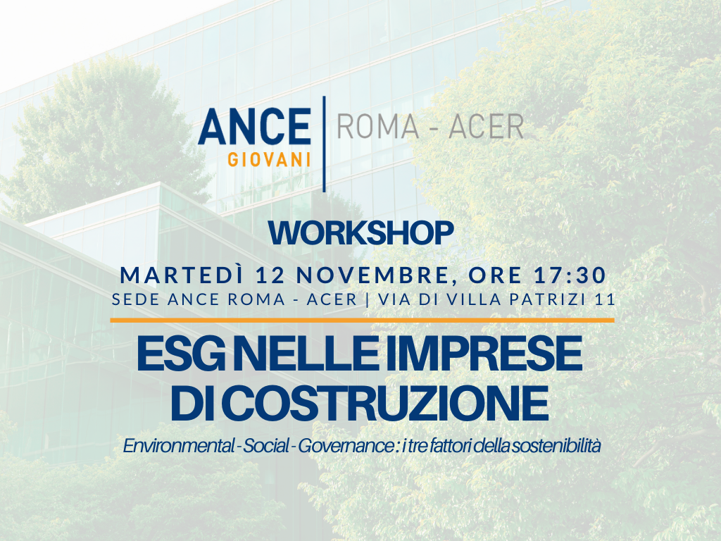 Martedì 12 novembre, alle ore 17:30 si terrà – nella sede della nostra Associazione, in via di Villa Patrizi, 11 (Roma) – il workshop organizzato dal gruppo Giovani Ance Roma…