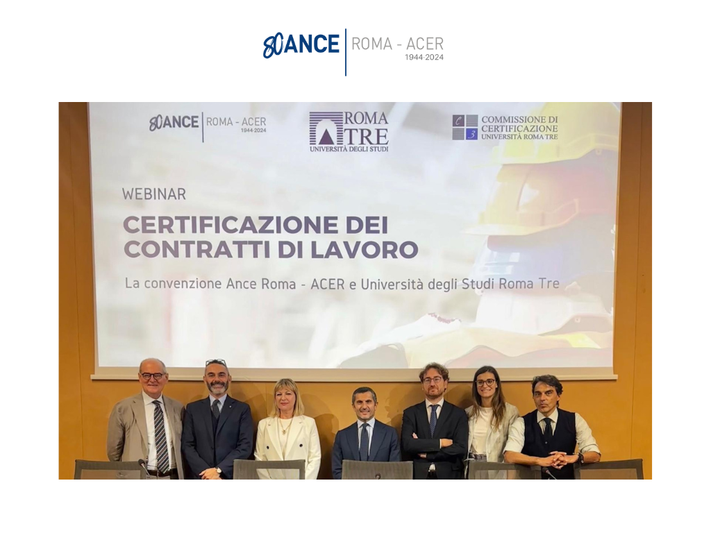 Si è tenuto mercoledì 16 ottobre il webinar“Certificazione dei contratti di lavoro. La convenzione Ance Roma – ACER e Università degli Studi Roma Tre”, durante il quale è stato presentato…
