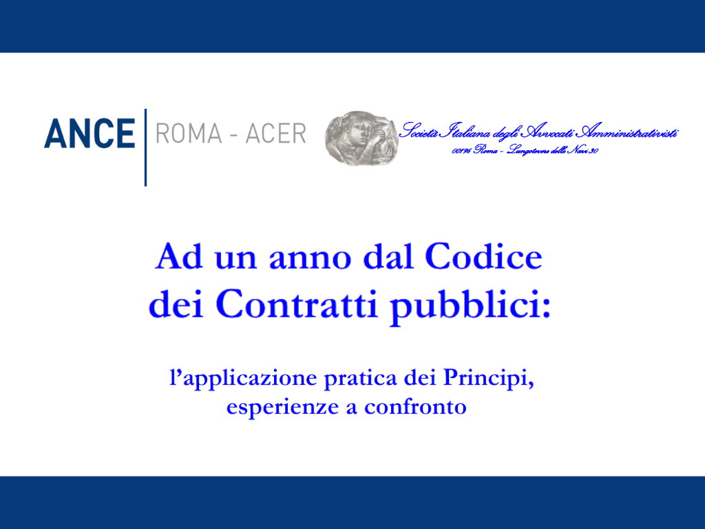 Martedì 16 aprile, dalle ore 16:30, nella sede della nostra Associazione, in via di Villa Patrizi, 11 si terrà il convegno: “Ad un anno dal Codice dei Contratti pubblici: l’applicazione…
