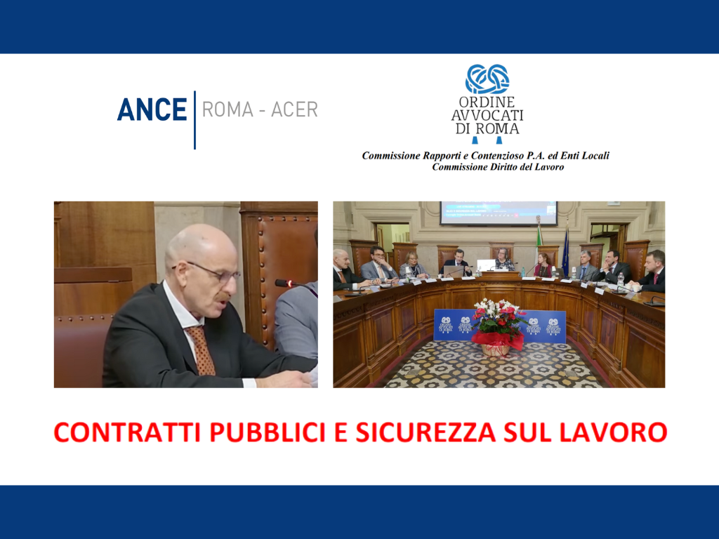 Il Vicepresidente Ance Roma – ACER ai Rapporti Sindacali, Giovanbattista Waly è intervenuto all’iniziativa organizzata dalla nostra Associazione insieme con l’Ordine degli Avvocati di Roma: “Contratti pubblici e sicurezza sul…