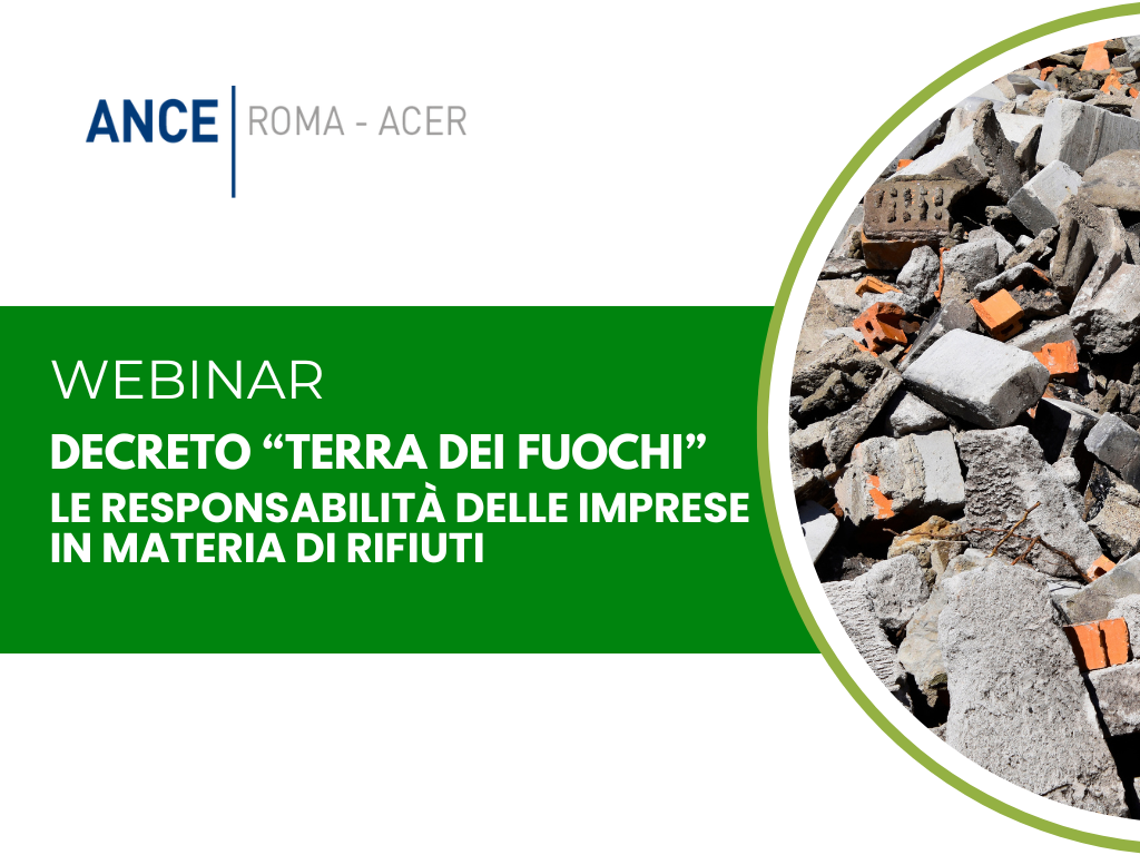 Lunedì 30 marzo, alle ore 15, si terrà il webinar per le imprese ANCE ROMA – ACER sulle novità del Decreto “Terra dei Fuochi” e sulle responsabilità delle imprese edili…