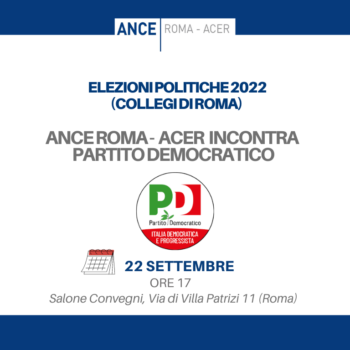 In vista dell’appuntamento elettorale del 25 settembre Ance Roma – ACER incontra, nella sede di via di Villa Patrizi, i candidati nei collegi di Roma per un confronto sull’attualità del…