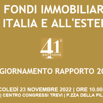Scenari Immobiliari presenta la 41ma edizione del Rapporto semestrale dedicato ai fondi immobiliari in Italia e nel mondo a Roma, in presenza presso il Centro Congressi Trevi (Piazza della Pilotta, 4), mercoledì 23 novembre…