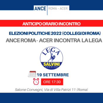 In vista delle elezioni del 25 settembre, Ance Roma – ACER incontra i candidati nei collegi romani appartenenti alle diverse forze politiche: secondo appuntamento, lunedì 19 settembre ALLE ORE 17:30, con alcuni esponenti…