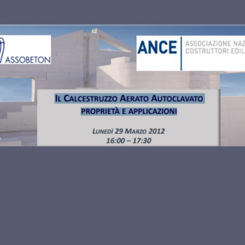 Lunedì, 29 marzo 2021 – dalle ore 16:00 alle ore 17,30 – si terrà il webinar Ance e Assobeton che tratterà le proprietà e le applicazioni del calcestruzzo aerato autoclavato,…