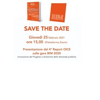 Sarà presentato, tramite piattaforma zoom, il 25 febbraio 2020 (ore 15.00) il 4° Rapporto OICE sulle gare BIM 2020. Nell’anno in cui il BIM viene richiesto per le gare sopra i 15 milioni, sarà analizzato l’impatto dell’utilizzo del Building Information…