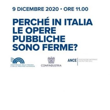 L’Ance insieme alla Conferenza delle Regioni, Confindustria e Luiss organizza l’evento “Perché in Italia le opere pubbliche sono ferme?”, che si terrà il 9 dicembre alle ore 11, in diretta…