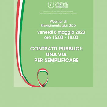 Venerdì 8 maggio, dalle ore 15 alle ore 18, la FONDAZIONE “CESIFIN ALBERTO PREDIERI” organizza sulla piattaforma Zoom Meetings il webinar: “Contratti pubblici: una via per semplificare” sul tema del momento,…