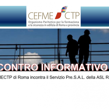 Mercoledì 12 febbraio – dalle ore 15:00 alle 17:00 – nella sede Ance Roma ACER | Via Villa Patrizi,n.11 – il CEFME CTP (Organismo paritetico per la formazione e la…