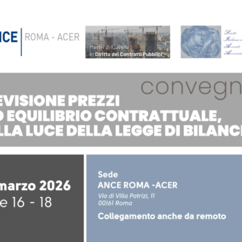 ANCE ROMA – ACER, SIAA (Società Italiana Avvocati Amministrativisti) e il Master Contratti pubblici UER – SIAA (diretto da Arturo Cancrini, Loredana Giani e Filippo Lubrano) organizzano in collaborazione un…