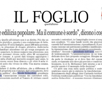Oggi, sul quotidiano Il Foglio, l’intervista del Presidente ACER Nicolò Rebecchini sul diritto all’abitare e il disagio abitativo nella Capitale, dopo l’incontro ACER di lunedì 19 novembre: “Politiche dell’abitare a…