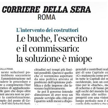 Oggi, sul Corriere della Sera di Roma, il commento del Presidente ACER Nicolò Rebecchini sulle ipotesi di nominare un commissario o di fare intervenire l’esercito, per affrontare il problema del…