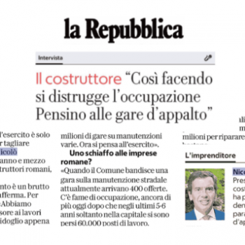 Oggi, mercoledì 19 dicembre, sulle pagine del quotidiano La Repubblica l’intervista del Presidente ACER Nicolò Rebecchini che interviene sulla questione riparazione buche a Roma. “Chiedere aiuto all’esercito è solo una…