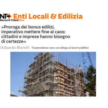 Proroga bonus edilizi. per il Vicepresidente ANCE alle Opere Pubbliche, Edoardo Bianchi: “Inimmaginabile non avere garanzie su tempi e modalità di fruizione di incentivi che hanno rilanciato la riqualificazione“. Così…