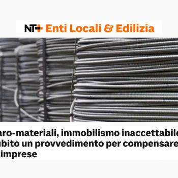 «Da un lato la speculazione dall’altro la difficoltà di approvvigionamento dei materiali, hanno portato a un fortissimo incremento dei costi delle materie prime e come conseguenza si rischia la mancanza…
