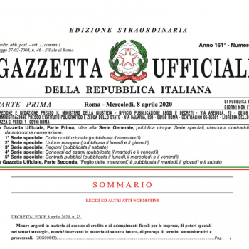 È stato pubblicato nella notte, in Gazzetta Ufficiale, il Decreto Imprese con le garanzie a supporto della liquidità per le attività. Il decreto è in vigore da oggi, 9 aprile. Di…