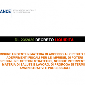 Decreto Liquidità 23/2020. L’Ance ha pubblicato un dossier illustrativo, “Fiscalità Edilizia” sulle misure urgenti in materia di accesso al credito e di adempimenti fiscali per le imprese, di poteri speciali…