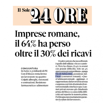«Oggi sulla base delle nostre stime, oltre l’82% dei cantieri è fermo, su 36.000 addetti del territorio, il Covid 19 ne blocca a casa circa 30.000 con una perdita di…