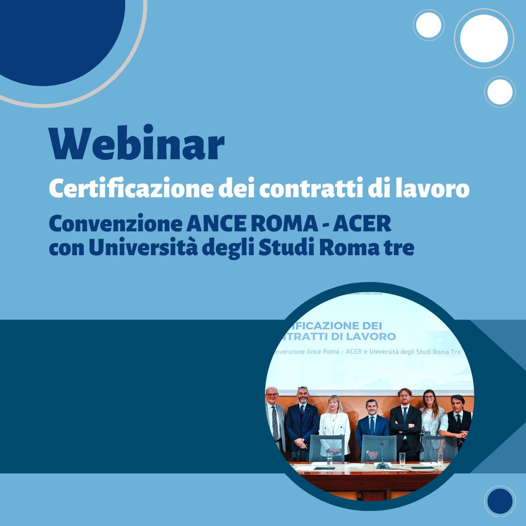 Webinar certificazione dei contratti di lavoro - Convenzione Ance Roma - ACER e Università Roma Tre