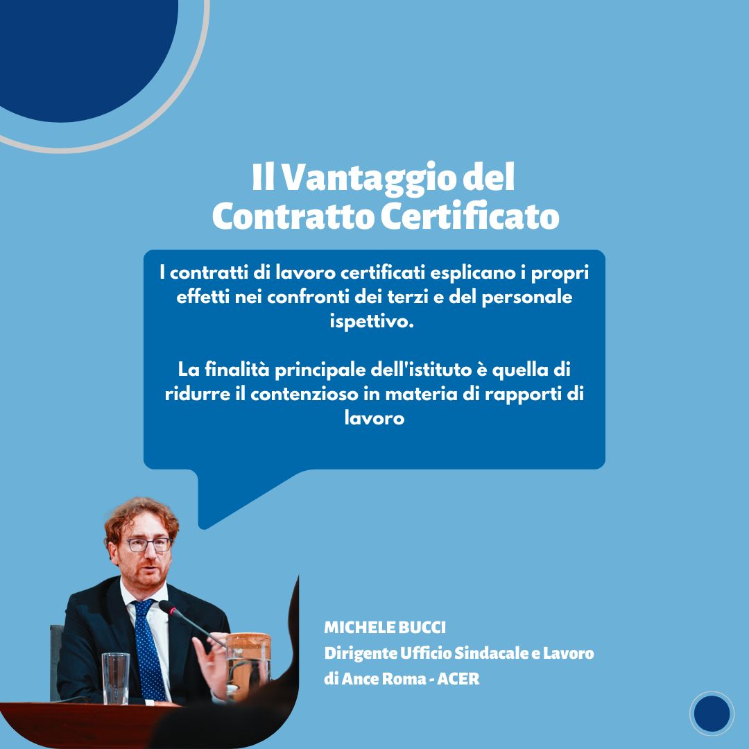 Si è tenuto mercoledì 16 ottobre il webinar“Certificazione dei contratti di lavoro. La convenzione Ance Roma – ACER e Università degli Studi Roma Tre”, durante il quale è stato presentato il nuovo servizio offerto dall’associazione per la certificazione dei contratti di lavoro (tra cui l’accordo di distacco, i contratti di appalto/subappalto anche in ambienti confinati, gli accordi individuali di modifica delle mansioni, della categoria legale e livello di inquadramento e relativa retribuzione). Sono intervenuti: il Presidente Ance Roma – ACER, Antonio Ciucci, i dirigenti dell’associazione Michele Bucci (Ufficio Sindacale e Lavoro) e Gianluca Celata (Ufficio Lavori Pubblici), il prof. Arturo Maresca (Emerito di Diritto del Lavoro all’Università La Sapienza di Roma) e la prof.ssa Silvia Ciucciovino (Ordinaria di Diritto del Lavoro e Presidente della Commissione di Certificazione dell’Università degli Studi Roma Tre).