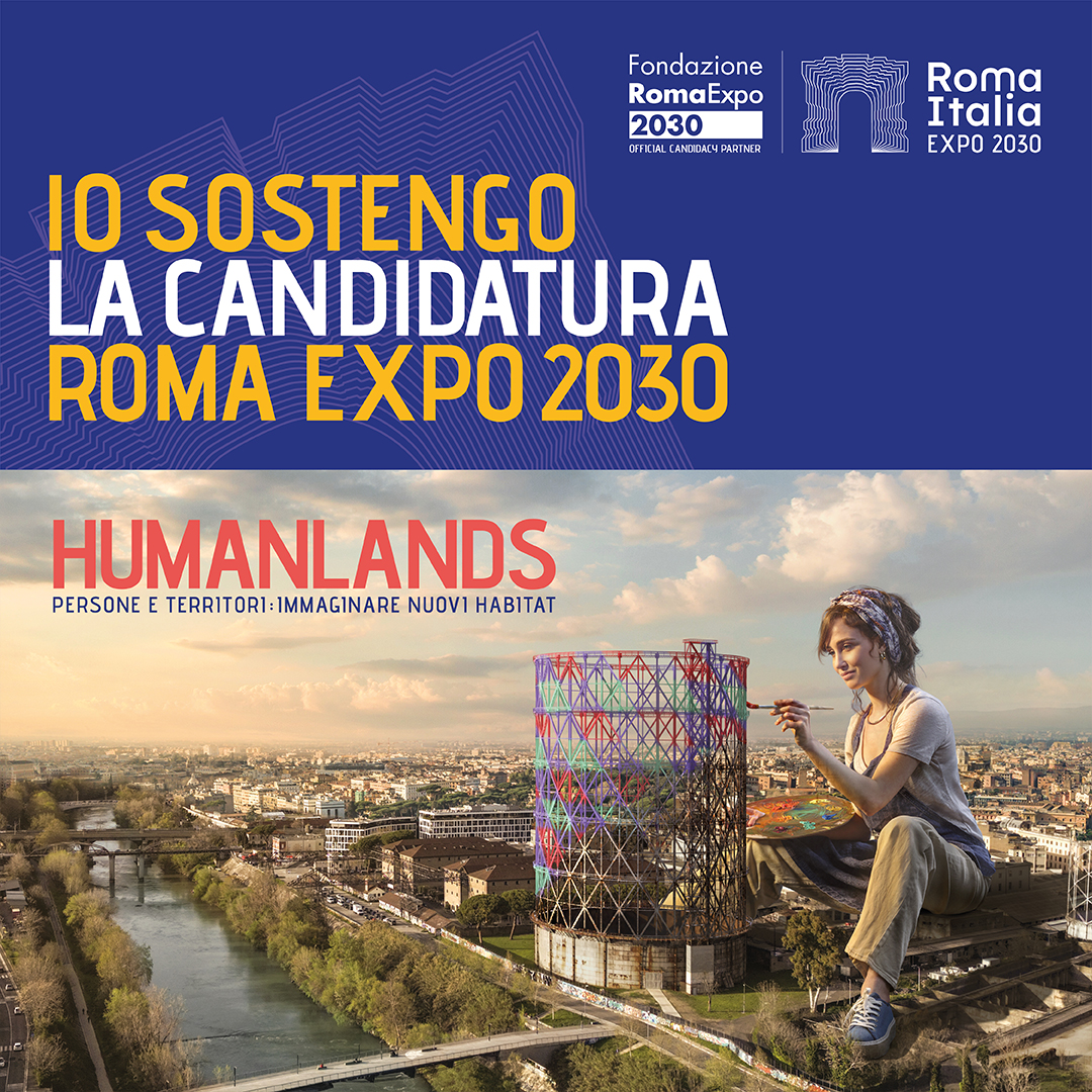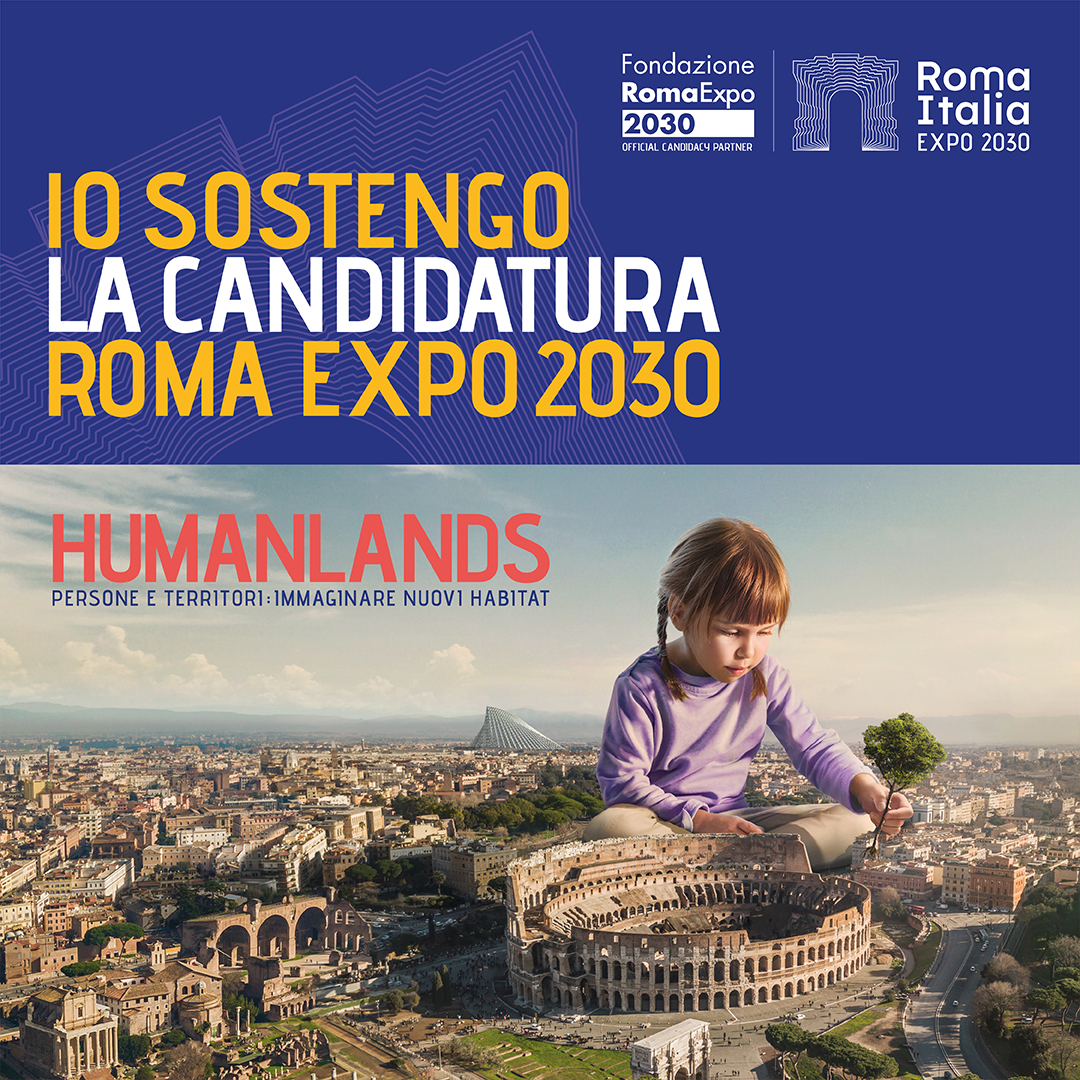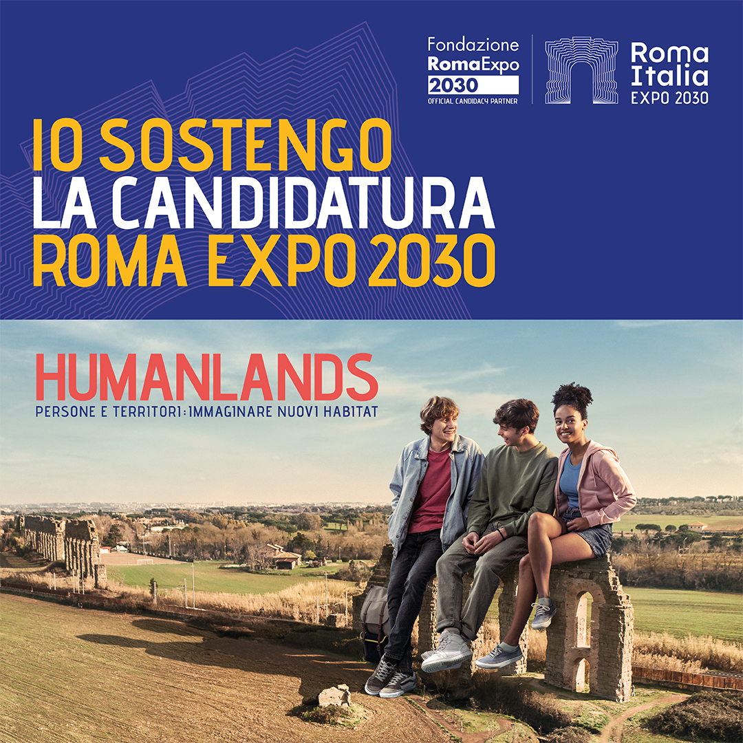 “HUMANLANDS è un neologismo coniato appositamente per sostenere la candidatura di Expo 2030 Roma ed il suo tema “People and Territories”. Expo sarà a tutti gli effetti un’occasione per iniziare a immaginare nuovi territori a misura d’uomo e nuove relazioni tra noi e i nostri habitat.