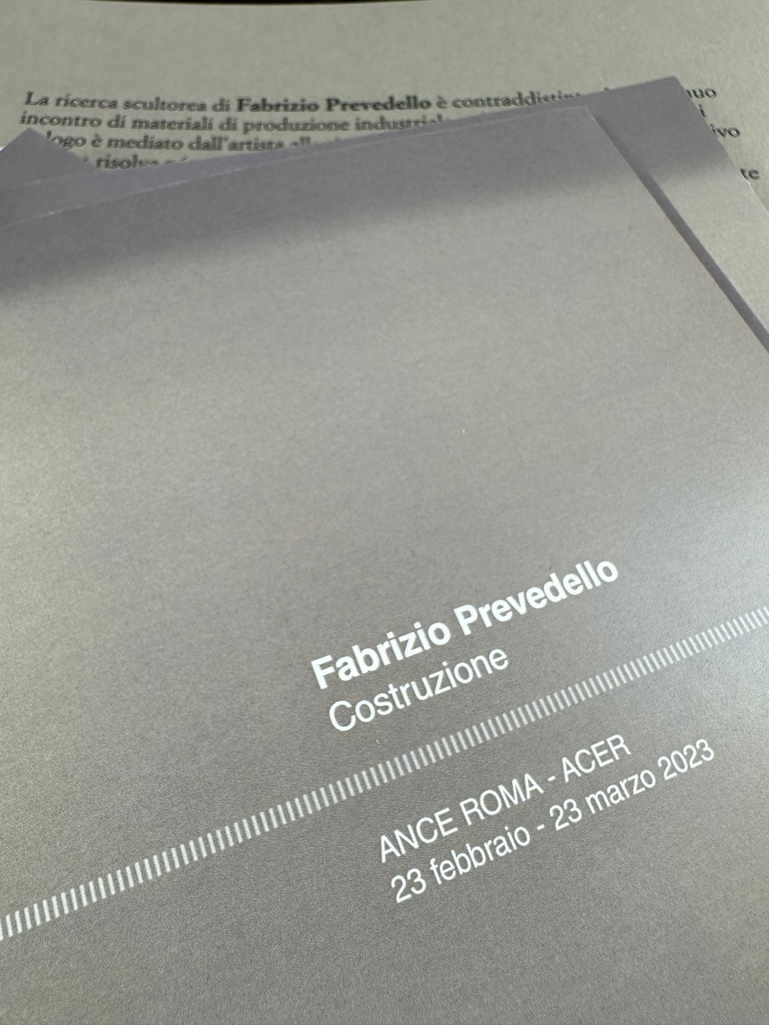 Si è tenuta giovedì 23 febbraio l’inaugurazione della mostra “Costruzione” di Fabrizio Prevedello, nella sede di Via di Villa Patrizi, 11 – Roma. Fino al 23 marzo, l’Associazione dei costruttori romani ospiterà l’esposizione delle opere dell’artista padovano, appositamente ideata per gli spazi della storica sede Ance Roma – ACER. La mostra sarà aperta dal lunedì al venerdì dalle ore 9 alle 13 e dalle 14 alle 18. L’iniziativa è stata organizzata dal gruppo Giovani Ance Roma – ACER e dalla galleria z2o Sara Zanin.