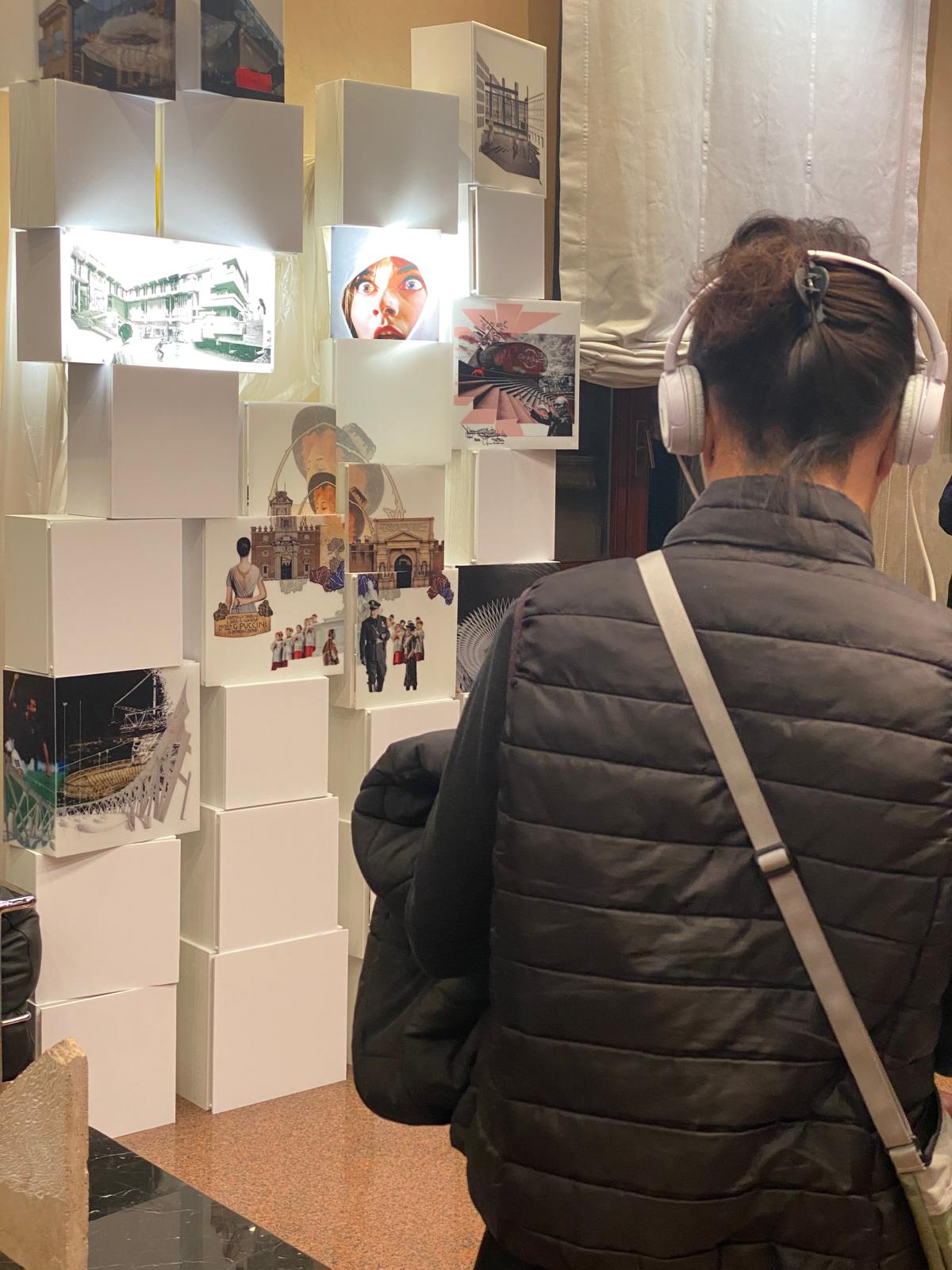 La Capitale è infatti al centro delle elaborazioni artistiche proposte: in “Sunday – Auditorium” Ottavia Tracagni dà appuntamento al visitatore all’Auditorium Parco della Musica, iconicamente rappresentato in un’illustrazione dai colori accesi; Roma è “Una mappa per perdersi” per Darya Shoshani e il suo mosaico di 49 stampe realizzate con la tecnica del frottage; se Yirui Fang recupera i simbolismi del rapporto degli antichi Romani con la natura nella sua “Attesa”, opera a olio su legno, il legame con la storia della città è forte anche in “Scavo”, acquerello di Simone Angela Mittelstaedt, e nei frammenti materici di Claudia Evangelista che nelle sue “Riappropriazioni naturali” mostra come il concetto di scarto sia in realtà inesistente. Hafsa Moin posa invece lo sguardo su una “Porta di Roma”, parte di una serie realizzata per raccontare l’identità e la ricchezza di ogni quartiere. Ma Roma è anche esperienza sensoriale, suono: mentre Lorenzo Galastro traduce in musica alcune foto esposte alla Centrale Montemartini, associando pixel a note musicali nella sua “Images-to-notes.centrale”, lo Studio associato Bluarch crea un’immersione dello spettatore nei pannelli di “Storie di Roma del 900”, video stampato composto da settori corredati da colonne sonore, realizzate da Hemel Music.