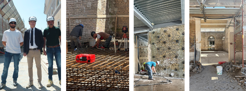 Ad accompagnarci, l’Architetto Adriano Draghini. “Ho scelto di fare l’architetto di cantiere, in cantiere – ci ha spiegato – perché si può toccare con mano l’evoluzione di quello che facciamo” ed è forse mosso dalla stessa motivazione anche Marco, neolaureato in Architettura e oggi giovane supporto tecnico in SAC, che dai banchi dell’Università di Roma Tre – davanti all’area di cantiere – è passato al di là della transenna, con caschetto e fogli, pronto a mettersi all’opera.