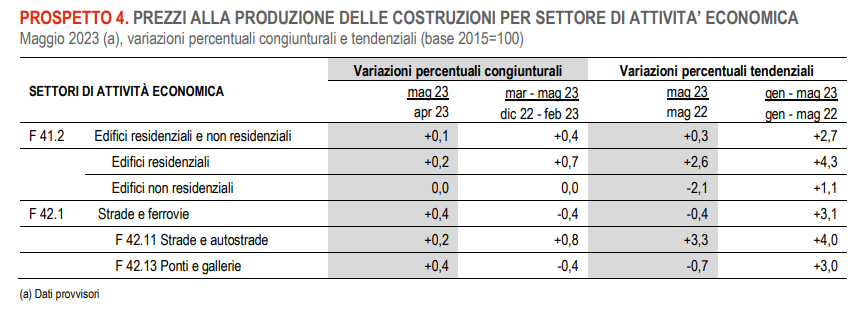I prezzi alla produzione delle costruzioni per “Edifici residenziali e non residenziali” crescono dello 0,1% su base mensile e dello 0,3% su base annua.