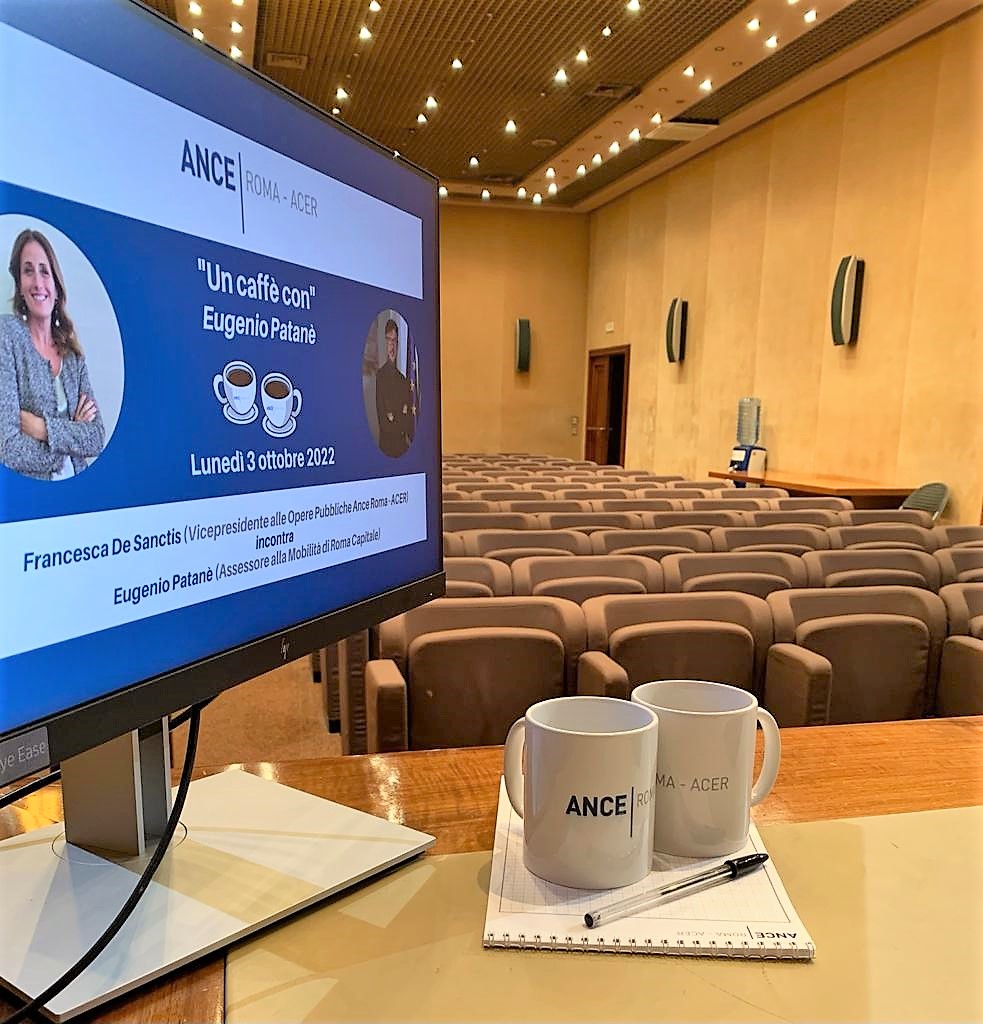 “Un caffè con” – Una chiacchierata davanti a una tazzina di caffè, un’occasione per confrontarsi e approfondire tematiche specifiche del nostro settore con gli ospiti: lunedì 3 ottobre 2022, la Vicepresidente alle Opere Pubbliche Ance Roma – ACER Francesca De Sanctis ha dato il via a una serie di faccia a faccia ospitati nel Salone dei Convegni della sede dell’associazione (via di Villa Patrizi 11). Primo ospite Eugenio Patanè, Assessore alla Mobilità di Roma Capitale.