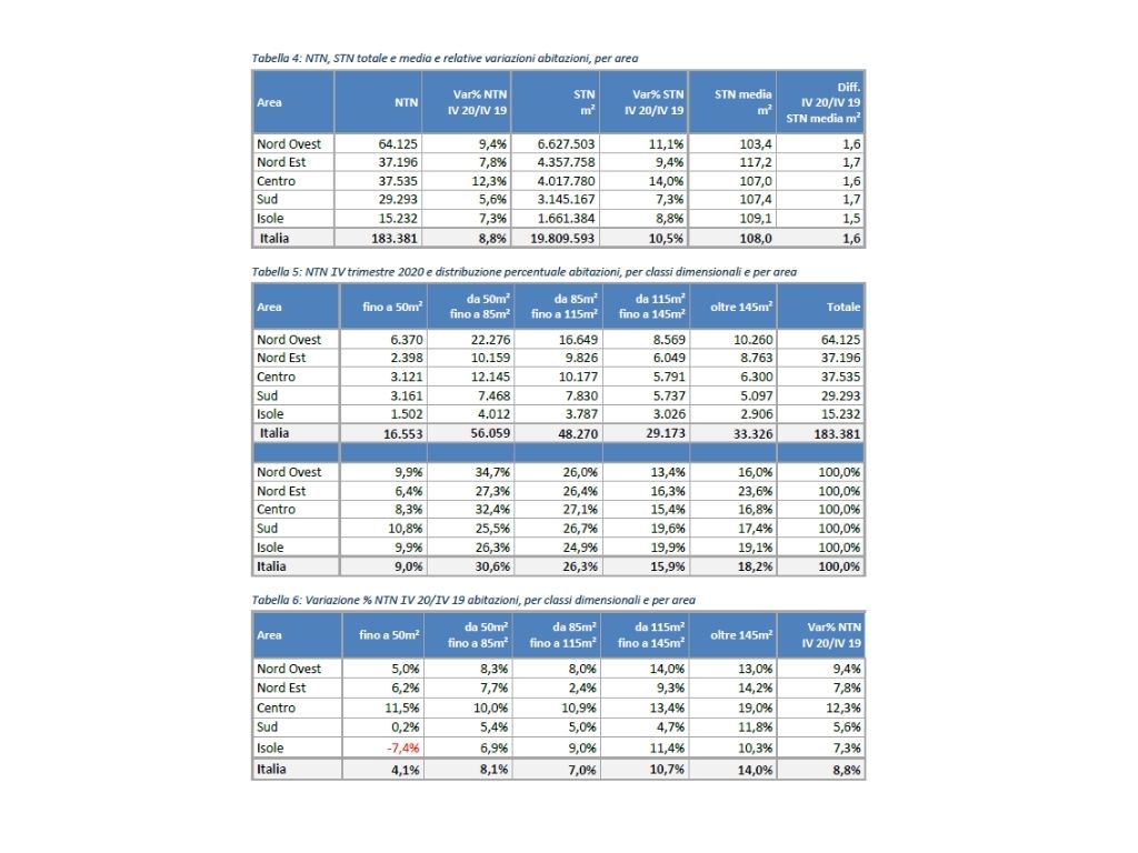 Secondo i dati dell’Osservatorio del mercato immobiliare dell’agenzia delle Entrate nel quarto trimestre 2020, per i volumi di compravendita del settore residenziale, continua e si rafforza la tendenza positiva già rilevata nel terzo trimestre, dopo i forti cali registrati nei primi due trimestri. Sono quasi 15 mila in più le abitazioni scambiate rispetto al quarto trimestre 2019, +8,8% in termini di variazione tendenziale.