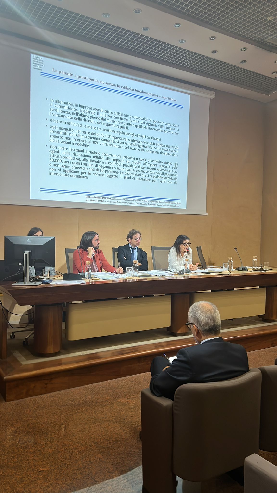 Si è svolto martedì 29 ottobre il webinar organizzato dall’Associazione dei Costruttori romani con Ance Lazio, e in collaborazione con l’Ispettorato d’area metropolitana di Roma, per illustrare agli associati tutte le novità introdotte con il provvedimento sulla cosiddetta patente a crediti. Sono intervenuti Corrado Felici (Direttore Ance Lazio), Simone Mazzucca (Direttore Ance Roma – ACER), Giulia Panariti (Funzionaria Ufficio Sindacale e Lavoro Ance Roma – ACER), Manuel Carusi (Responsabile Processo Vigilanza Tecnica Lazio dell’Ispettorato d’area metropolitana di Roma) e Ornella Improta (Responsabile Processo Vigilanza Ordinaria Roma dell’Ispettorato d’area metropolitana di Roma). A moderare l’incontro Michele Bucci, Responsabile Ufficio Sindacale e Lavoro Ance Roma – ACER.
